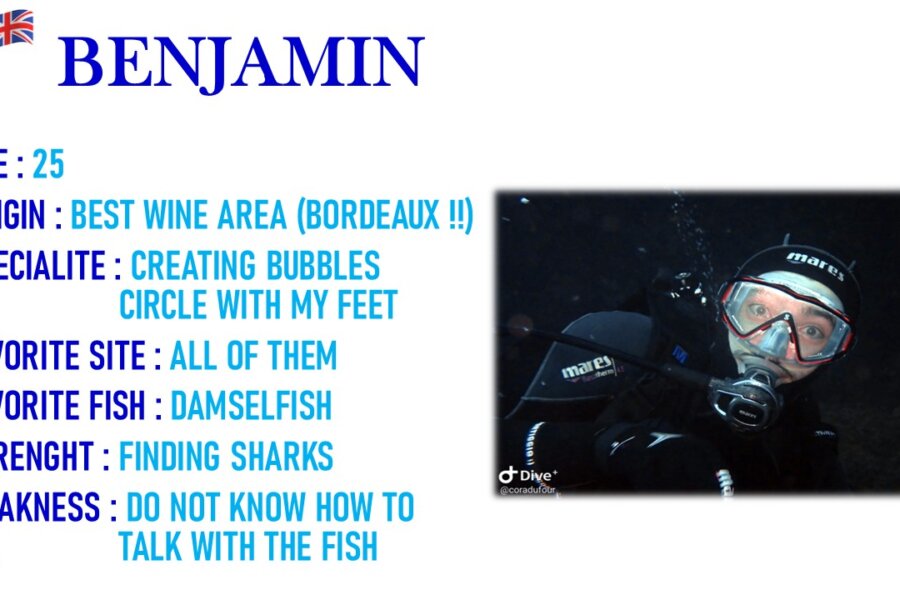 I love diving so much that I go diving on vacation to explore new sites. I love being in contact with this incredible world underwater and I try as much as I can to pass on my passion and the need to protect the oceans around the world.